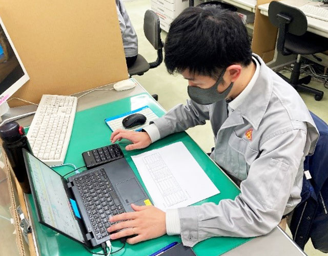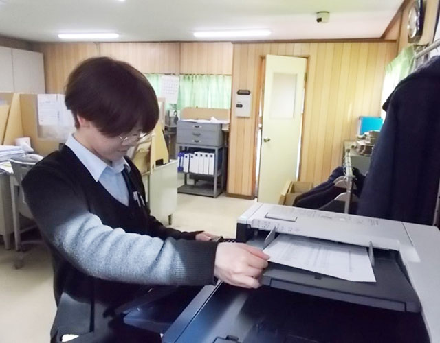 業務部に所属してお得意先様との電話対応、受注発注業務、新規製品マスターの登録、毎日の工程別製函計画の作成を行っています。業務部は、ご注文から生産・納品までの全ての工程に携わる為、部員が幅広い業務を経験しています。そのため、みんなが同じ業務を遂行しフォローし合えるように多能工化を積極的に取り組んでいます 。私自身も伝票発行業務や、段ボールシートの生産計画(貼合)を経験しました。覚えることはたくさんあり大変ですが、その分やりがいもある職場です。
